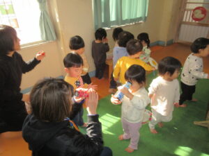 0~5歳児クラスのお友だちが集まりみんなで新年お楽しみ会に参加をしました。